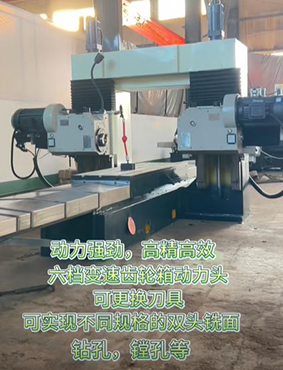 数控五轴升降双面铣床,动力强劲,高精高效,六档变速齿轮箱动力头,更换刀具,可实现不同规格的双头铣面,钻孔,镗孔等功能。抖音扫一扫,观看视频。