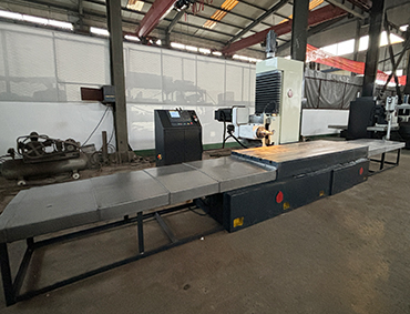 客户定制数控端面铣床装配完毕,搭配无极调速动力头,带中心出气,工作台800*2.2米。