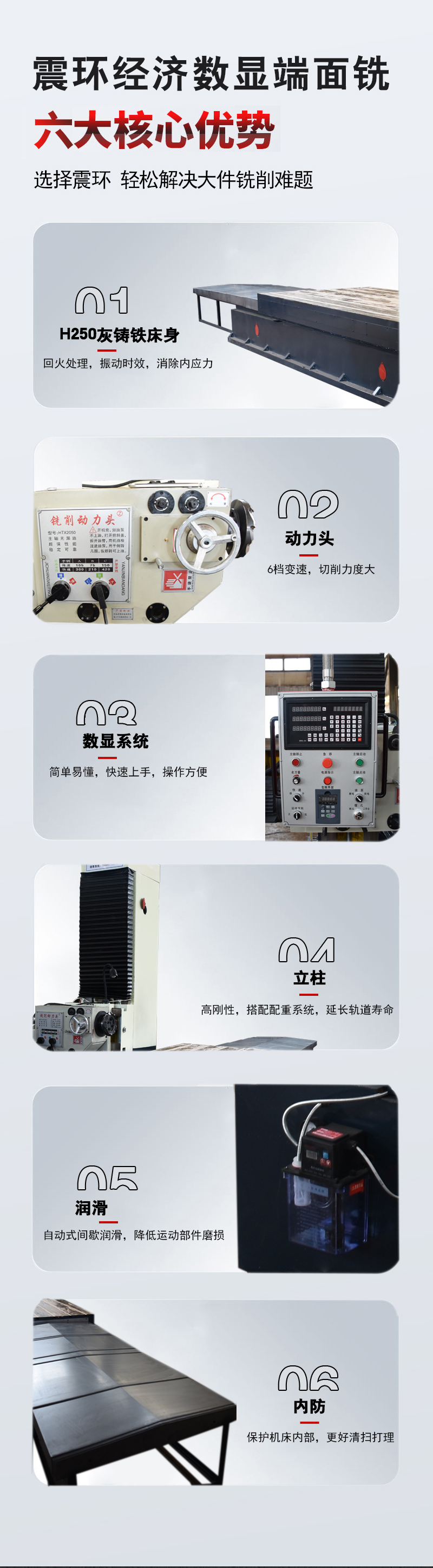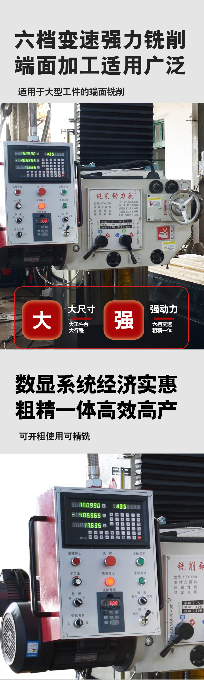 数显系统经济实惠,粗精一体高效高产,六档变速强力铣削,端面加工适用广泛。